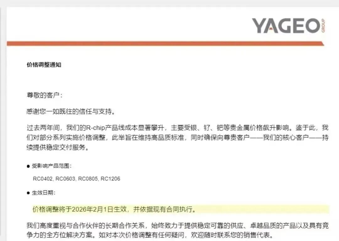 2025年12月27日,风华高科宣布,2026年1月1日起对部分产品价格调涨。