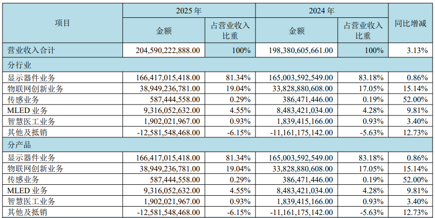 京东方科技集团股份有限公司(以下简称“公司”)发布2025年年度报告,公司实现全年营业收入2045.90亿元,同比增长3.13%;归属于上市公司股东的净利润58.57亿元,同比增长10.03%。