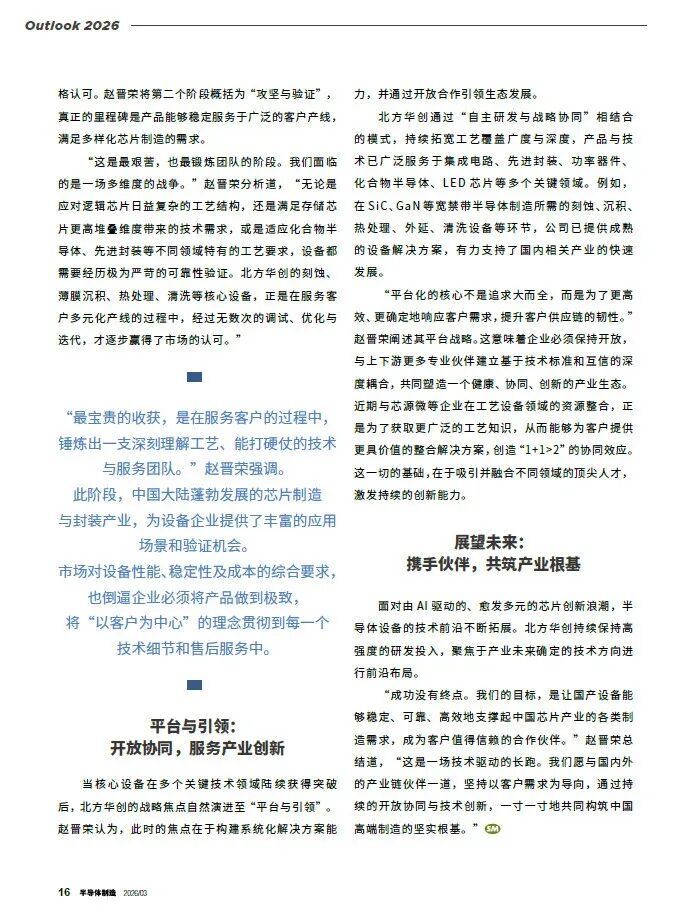 “成功没有终点。我们的目标,是让国产设备能够稳定、可靠、高效地支撑起中国芯片产业的各类制造需求,成为客户值得信赖的合作伙伴。”赵晋荣总结道,“这是一场技术驱动的长跑。我们愿与国内外的产业链伙伴一道,坚持以客户需求为导向,通过持续的开放协同与技术创新,一寸一寸地共同构筑中国高端制造的坚实根基。”