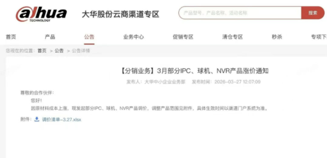 到了整机厂层面,此前以海康威视为代表的头部厂商,长期为行业兜底,自行消化大部分成本上涨,尽量不调整终端价格。但本轮成本全线抬升,已超出企业内部消化能力,厂商只能选择调价,甚至对未执行订单重新报价。说到底,本轮涨价并非某一环节主动为之,而是整个产业链被迫联动上调——上游要利润,中游求生存,下游也无法长期亏损经营。