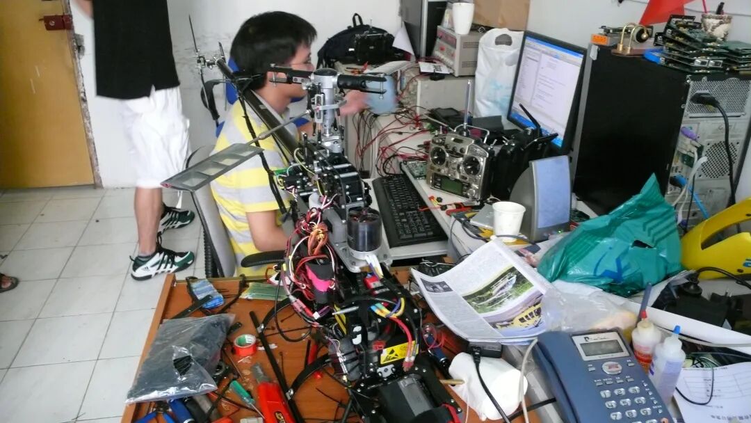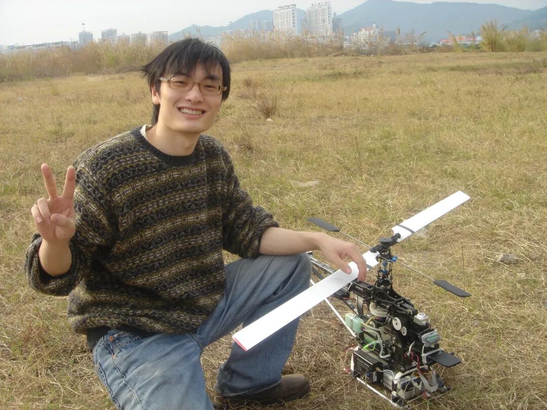 比赛是 2005 年,结束后我跟几个同学开始做 final year project。直升机的起点也挺偶然:大学时我帮我妈处理一批无人认领的货,卖完有二十万,我 “剥削” 了大概 5 万。那 5 万就成了 “星星之火”——我买了个遥控直升机,它变成我的一个宝贝,我到哪里就搬到哪里。