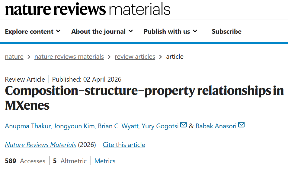 Thakur, A., Kim, J., Wyatt, B.C. et al. Composition–structure–property relationships in MXenes. Nat Rev Mater (2026).
