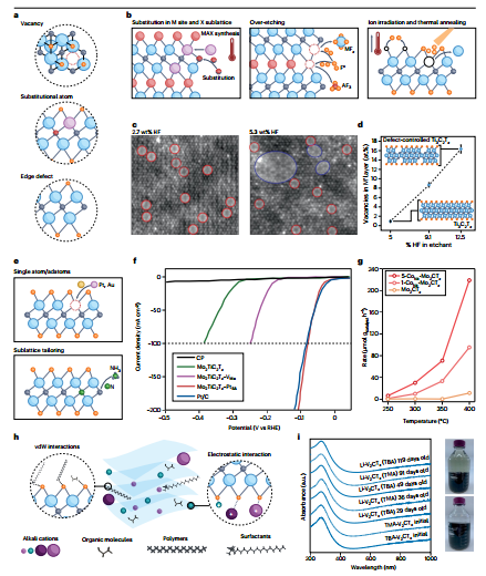 图 通过原子缺陷、单原子掺杂和插层工程调整MXene性能的策略