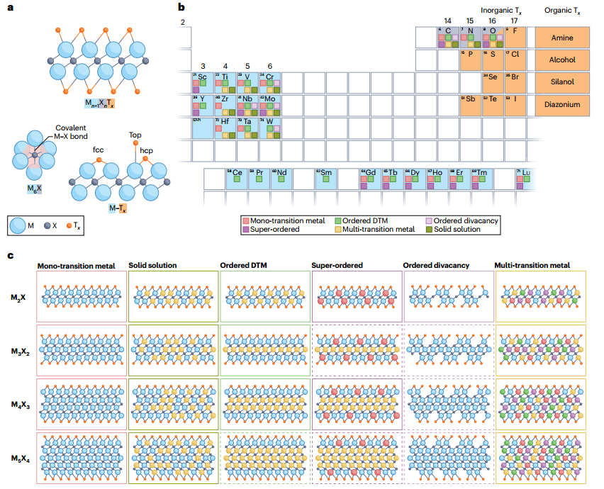 MXenes中M和X的组成与结构多样性