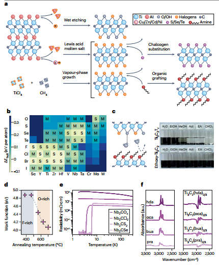 MXenes自2011年发现以来,已成为材料科学中增长最快的2D材料家族,其研究规模在2D材料领域仅次于石墨烯。这种材料因其多样化的表面化学、类金属的导电性、优异的机械强度及电化学性能而备受关注。然而,如何通过精确控制其原子尺度的组成和结构来实现“按需定制”性能,仍是当前将实验室发现转化为实际应用的核心任务。