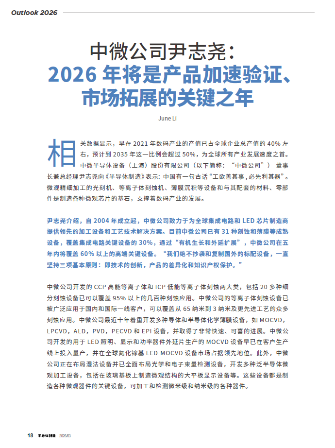 中微公司尹志尧:2026年将是产品加速验证、市场拓展的关键之年