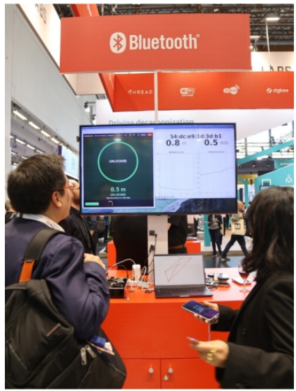 现场展示的基于蓝牙信道探测的测距(Ranging)应用引人注目,芯科科技基于该技术的解决方案具有实时高精度距离感知能力。相较于传统的接收信号强度指示(RSSI)或到达角/出发角(AoA/AoD)方案,信道探测不仅能够提供更为精准的距离测量,而且可以支持多种场景中的不同应用。例如,该方案可以应用于汽车无钥匙进入与启动系统(PEPS),使汽车对用户的手机或者车钥匙等设备进行物理空间实时测量,并在用户接近车辆时解锁车门。