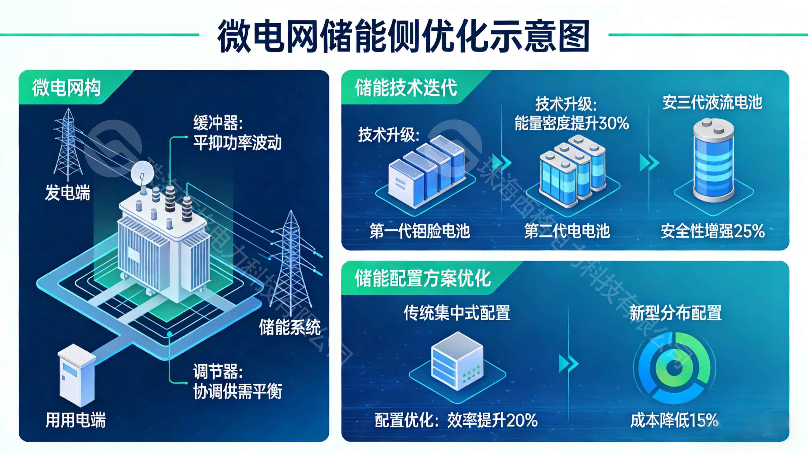 储能系统是微电网能量平衡的“缓冲器”与“调节器”,其性能与配置合理性直接影响能量平衡的调控效果,优化核心是提升储能的容量利用率、响应速度与经济性。
