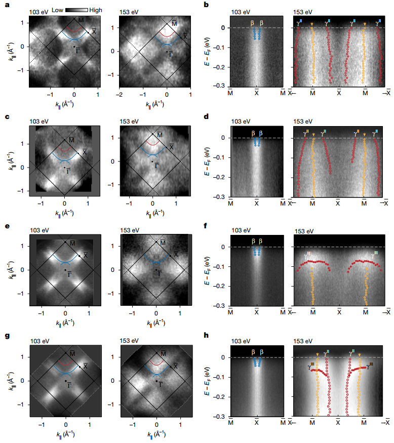 研究人员通过ARPES发现,超导结构γ带跨越费米能级,非超导1313结构γ带为平带位于费米能级下70 meV,2323超结构双层与三层γ带共存,解释了其复杂费米面拓扑。
