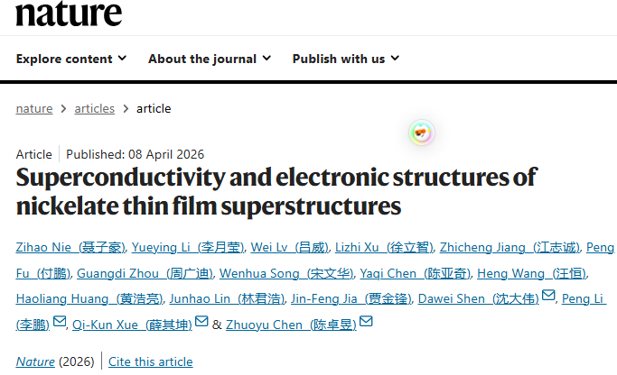 Nie, Z., Li, Y., Lv, W. et al. Superconductivity and electronic structures of nickelate thin film superstructures. Nature (2026).