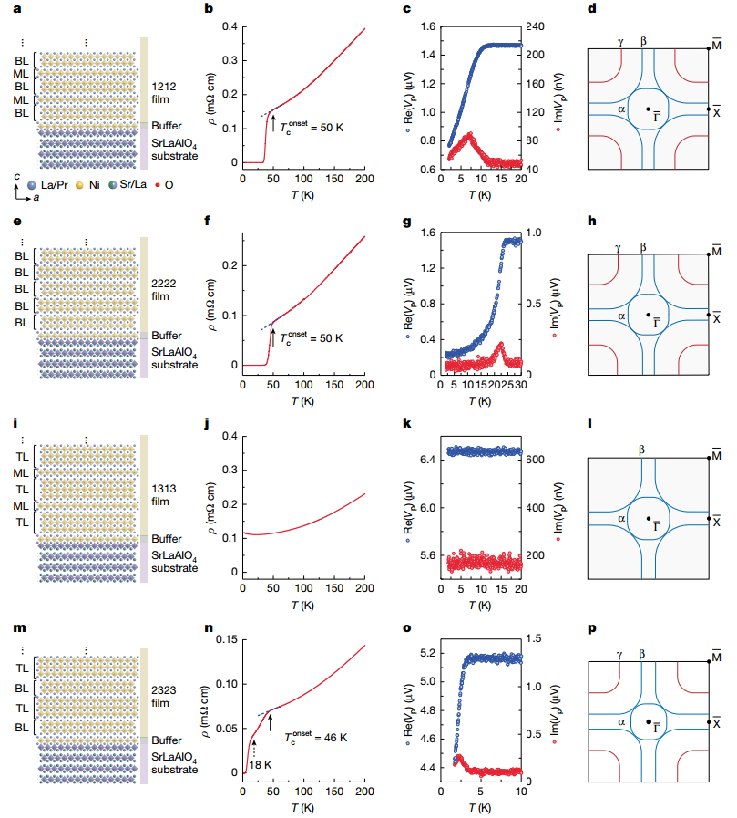 本文成功利用原子层外延技术制备了1212和2323纯相超结构薄膜,并首次证明它们在常压下具有高达50 K的起始超导转变温度。