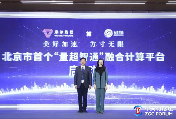 ▼ 推出北京首个“量超智通”融合计算平台。作为此次中关村论坛年会上展现中国科技自主创新实力的重要亮点,该平台实现了从核心芯片到应用软件的全链条自主可控,为我国抢占未来算力赛道、培育新质生产力注入强劲动能。在北京市和海淀区两级政府支持下,这一平台由摩尔线程与光量子计算领军企业硅臻联合推出,以摩尔线程新一代GPU和硅臻的量子计算机为双核心支撑,构建起“量超智通”融合算力底座,打破了经典算力与量子算力的技术壁垒,实现了多种算力的高效协同。