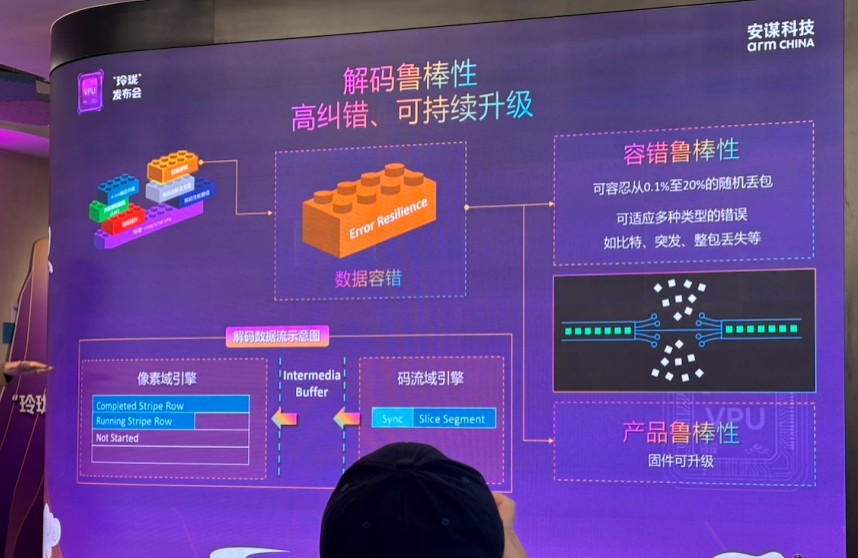 与此同时,鲁棒性与低延时成为了“峨眉”的隐性护城河。在网络环境恶劣的边缘计算场景中,信号传输的抖动和丢包是常态。技术数据显示,“峨眉”具有强大的错误处理能力,在丢包率高达20%的情境下仍可纠错解码。针对实时交互需求,该产品采用了条带级(Slice-level)编解码控制技术。安谋科技VPU研发总监黄鑫博士解释称,这种技术打破了传统的“帧处理”逻辑,无需等待整帧图像传输完毕即可开始流水线作业,从而显著降低了端到端的编解码延时。这种对毫秒级延时的极致追求,正是智能驾驶与无人机等实时视觉系统得以安全运行的技术底座。