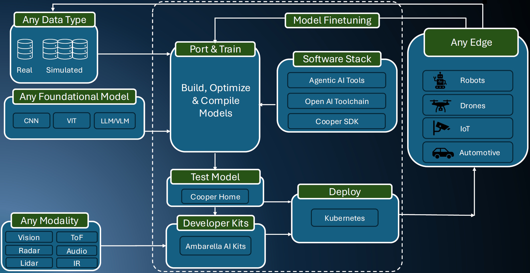 The Ambarella developer workflow: Any data, any model, any modality, and any edge device (Source: Ambarella)