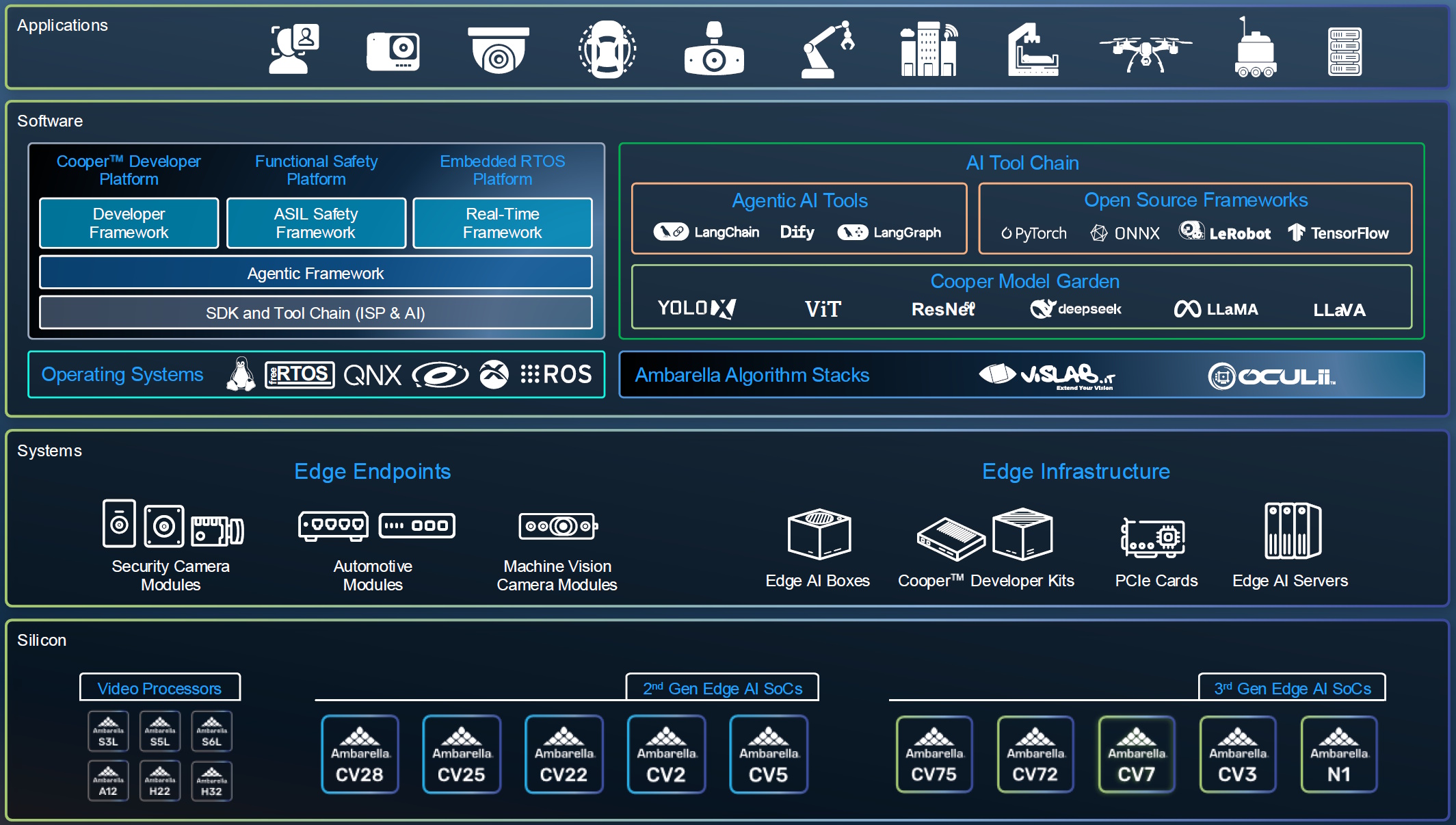 Ambarella’s architecture supports this model by combining perception AI, generative AI capabilities, and agentic AI orchestration layers. Together, these components enable developers to build closed-loop systems that integrate sensing, reasoning, and action.