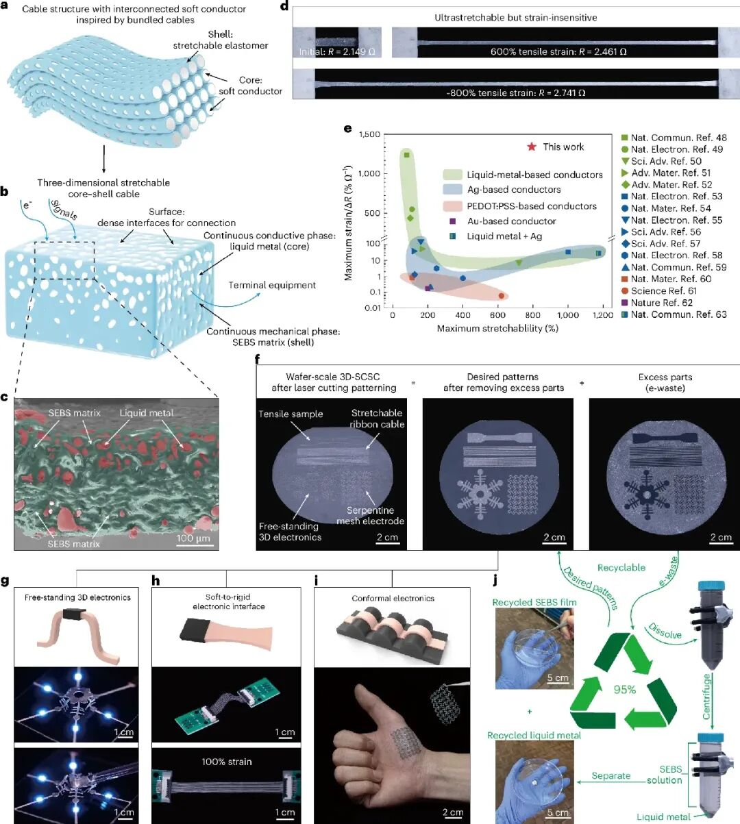 Wu, P., Jia, S., Li, J. et al. A three-dimensional stretchable core–shell cable for soft and hybrid electronics that is patternable, recyclable and noise-resistant. Nat Electron (2026).