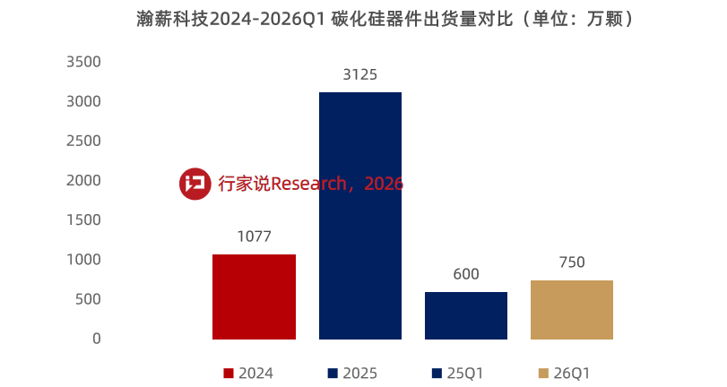 根据公告,今年1—3月瀚薪科技的碳化硅器件出货量突破750万颗,同比增长25%。