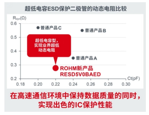 中国上海,2026年4月2日——全球知名半导体制造商ROHM(总部位于日本京都市)今日宣布,推出兼具业界超低动态电阻(Rdyn)*1和超低电容特性的ESD(静电放电)保护