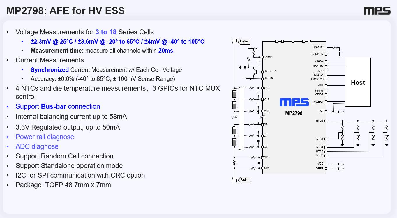 高精度、强鲁棒、低功耗:MPS覆盖HV/LV储能的全系列 AFE 与均衡方案