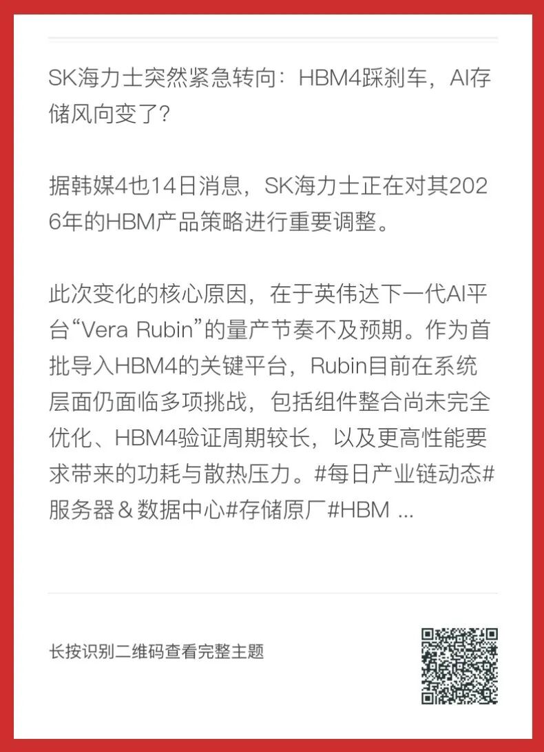 SK海力士正在对2026年的HBM产品策略进行重要调整。