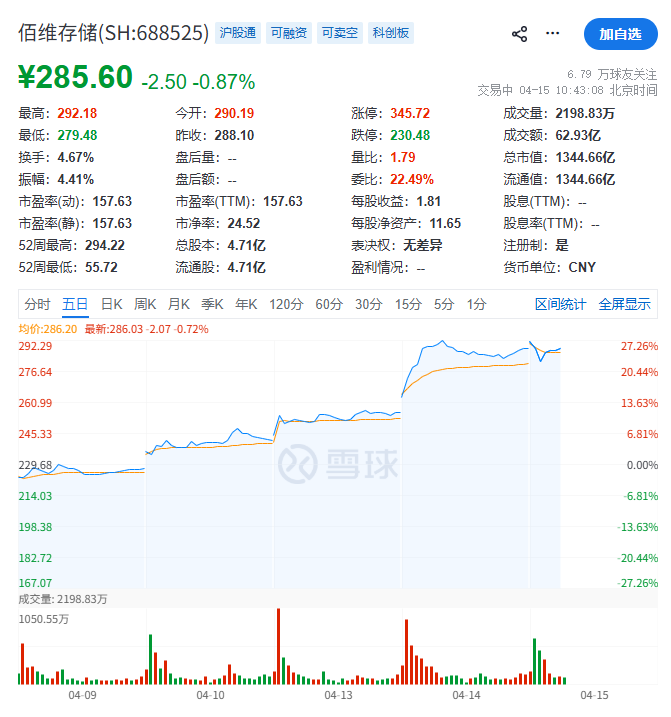 4月14日,佰维存储创历史新高,达到了1356亿,成为中国市值第二高的存储模组厂。