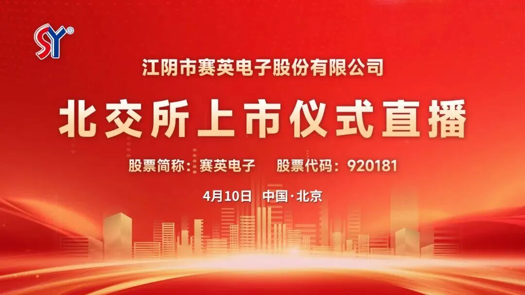 2026年4月10日,江阴市赛英电子股份有限公司(股票简称:赛英电子,股票代码:920181)正式在北京证券交易所挂牌上市,成为北交所"功率半导体部件第一股"。截至当日收盘,赛英电子股价收报61.8元/股,较发行价28元大涨120.71%,最新总市值达26.7亿元。