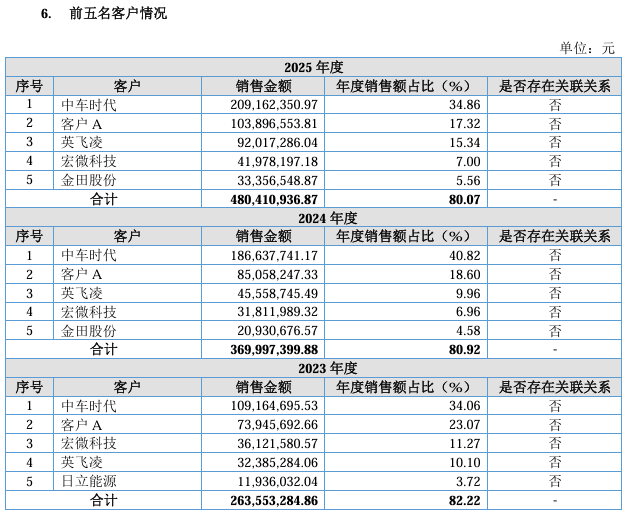 从客户资源来看,公司的定位优势进一步凸显。赛英电子已与英飞凌、中车时代等国内外头部企业建立稳定合作关系,其中英飞凌作为全球功率半导体龙头,其合作背书不仅验证了赛英产品的品质达到国际标准,更让公司得以深度绑定全球产业链核心环节,稳定订单来源。2025年公司营收达6亿元,年复合增长率超30%,高速增长的业绩背后,正是其清晰的细分定位与优质客户资源的双重支撑。不过需要注意的是,公司存在客户集中度过高的风险,前五大客户占比高达80%,这也成为制约其稳健发展的潜在隐患,后续需通过拓展客户群体逐步缓解这一风险。