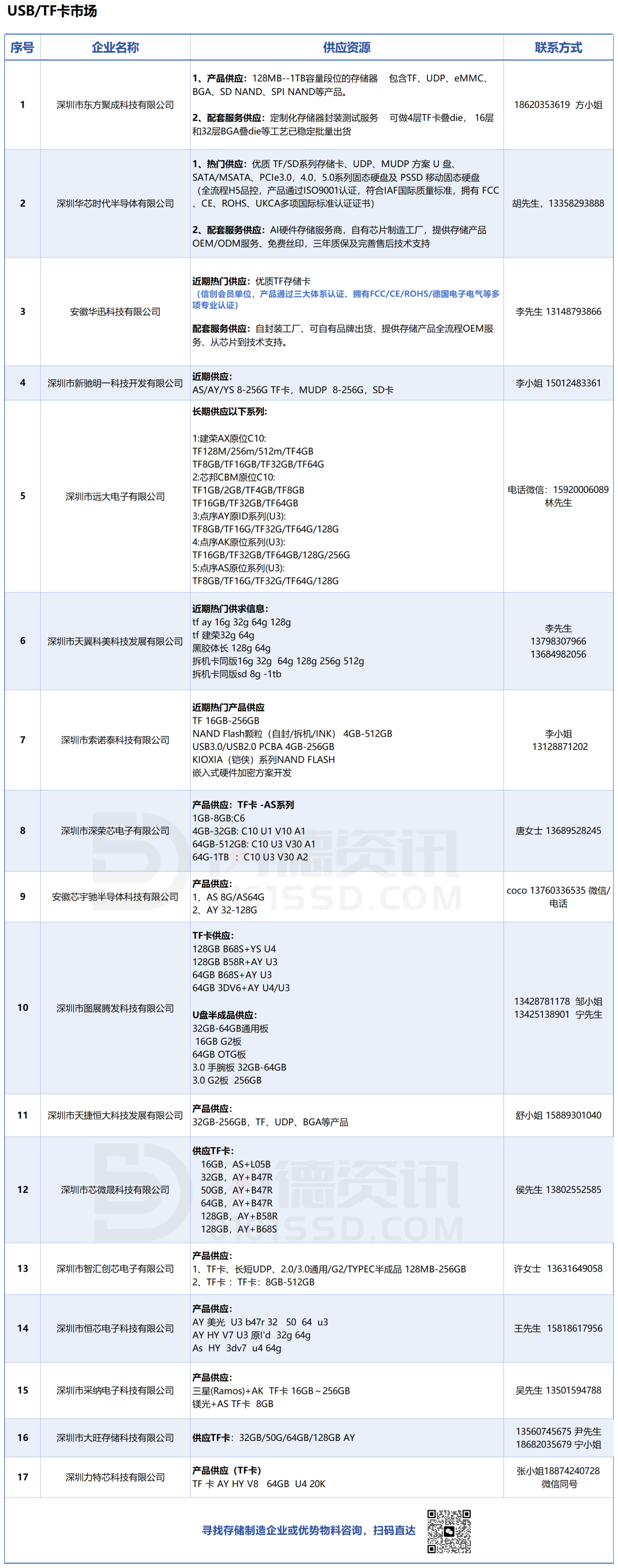 配套服务供应:AI硬件存储服务商,自有芯片制造工厂,提供存储产品OEM/ODM服务、免费丝印,三年质保及完善售后技术支持。