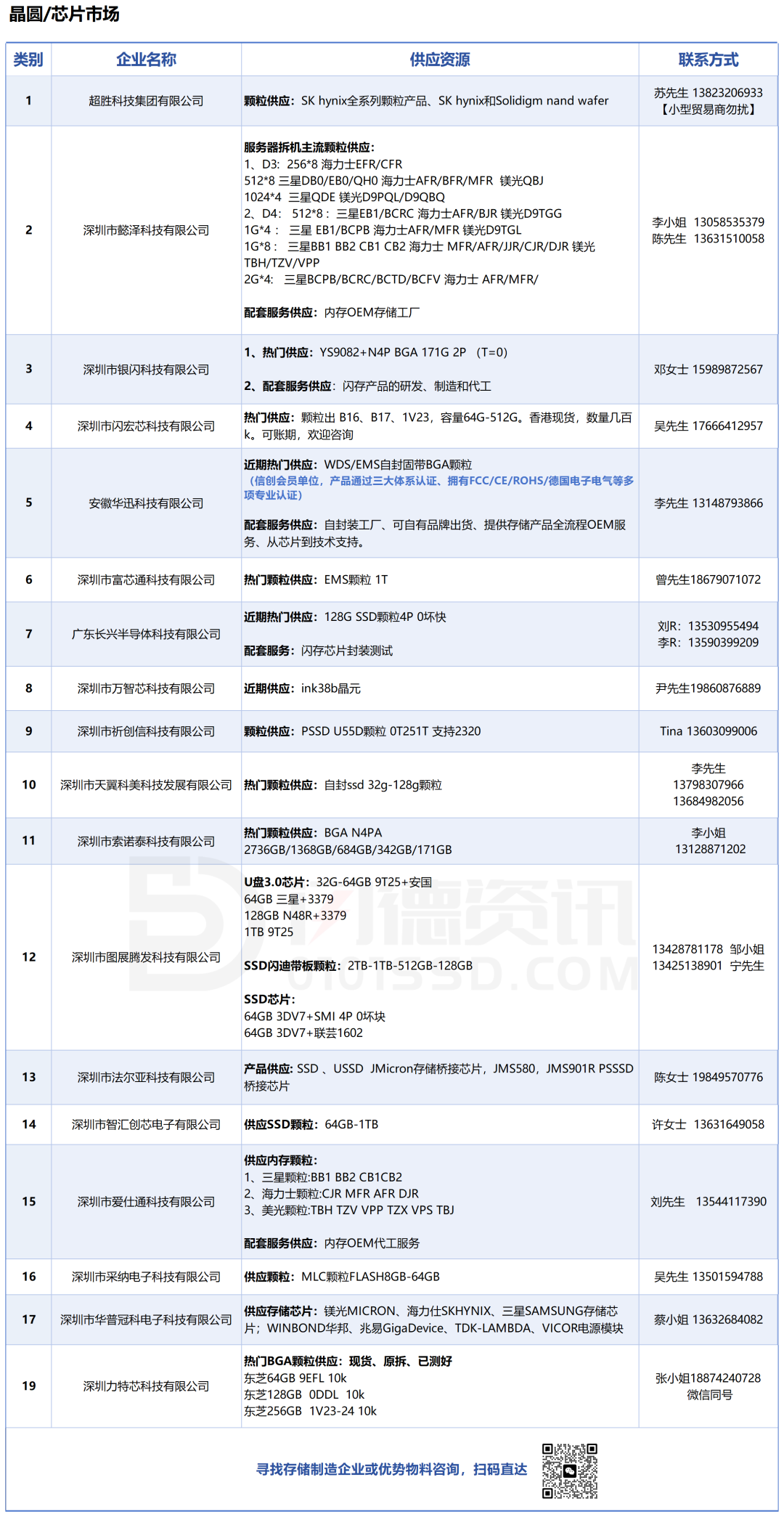 供应:颗粒出 B16、B17、1V23,容量64G-512G。(香港现货,数量几百k。可账期,欢迎咨询)