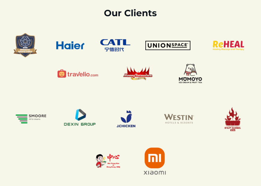 根据Starlead Group官网公布的客户名单,该公司客户包括海尔、宁德时代(CATL)、小米等中国知名企业,以及Westin酒店、BRI银行等。