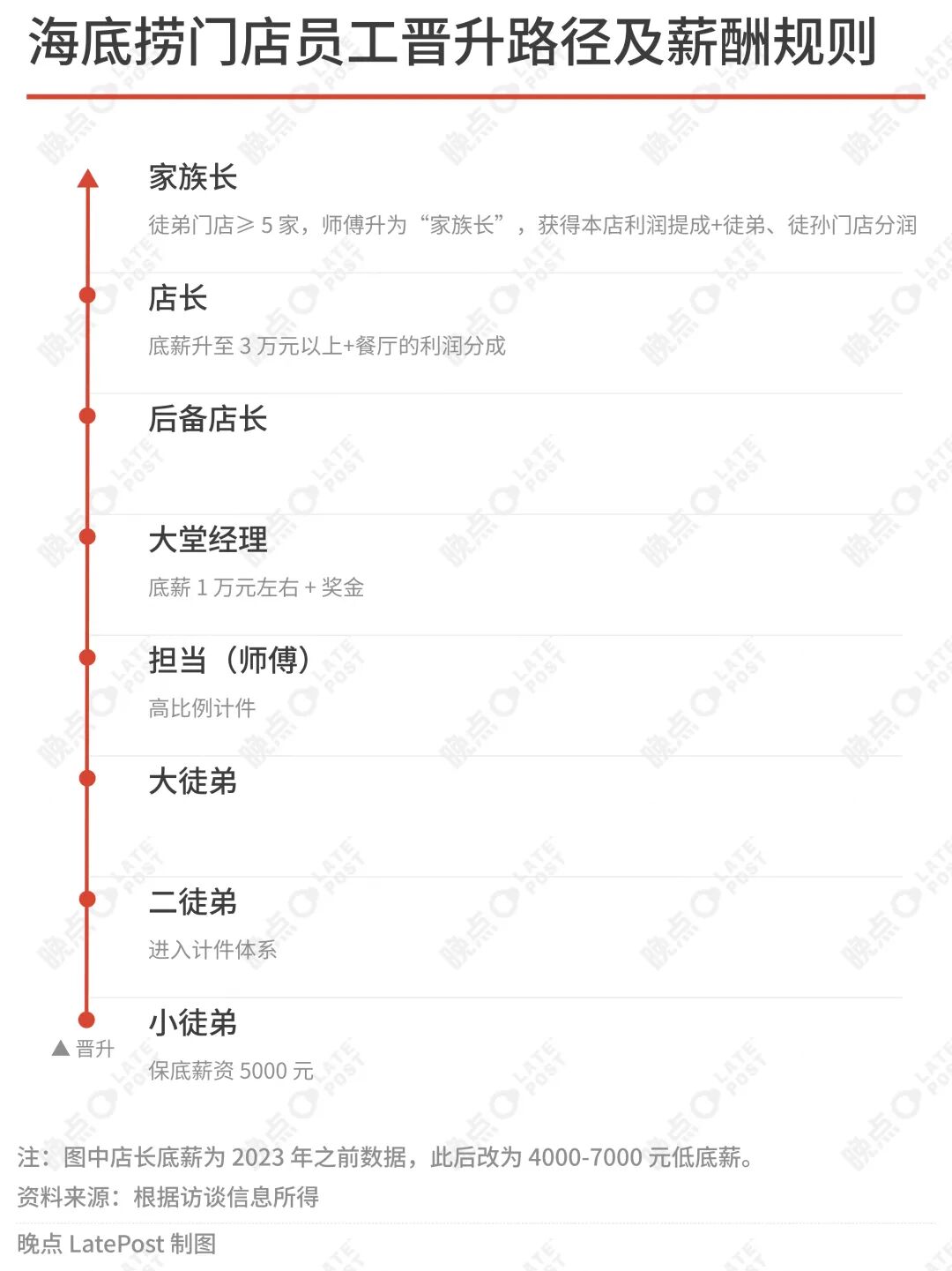 为了能把积压在旧有晋升通道的数千个储备干部,尽快 “输送” 到红石榴计划去开店,海底捞主品牌的门店改为双管店和多管店模式:一个店长同时分管 2 家甚至 3 到 4 家店,“本店” 之外的门店由代理店长负责,抽成比例不及本店的一半。