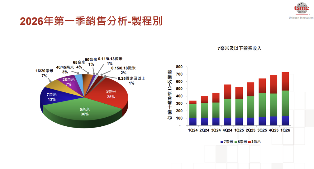 得益于人工智能需求持续旺盛,台积电管理层还上修了全年营收目标和资本支出,并介绍了先进制程进展、产能扩张计划、先进封装布局。同时,也回应了马斯克Terafab与英特尔(Intel)合作所带来的竞争、中东战争所带来的原物料及能源供应风险等问题。