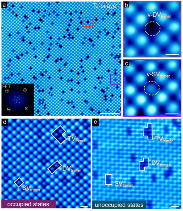 图5. 三聚体空位缺陷同时存在于双层Te中。