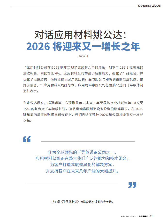 •《半导体制造》:面向2026年,应用材料公司的发展战略重点将聚焦于哪些方面?