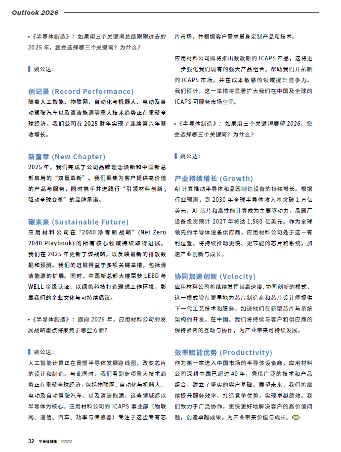 •《半导体制造》:如果用三个关键词展望2026,您会选择哪三个关键词?为什么?