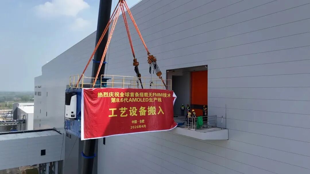 4月15日,合肥国显举行工艺设备搬入仪式。随着产线设备搬入、工艺贯通、产能逐步释放,产线将加速进入大规模产业化新阶段。作为全球首条搭载ViP技术的高世代AMOLED生产线,产线总投资550亿元,设计产能为每月3.2万片玻璃基板(2290mm×2620mm)。新产线可生产更多尺寸的AMOLED面板,覆盖从微小到中大、从平面到3D显示的多尺寸应用场景。