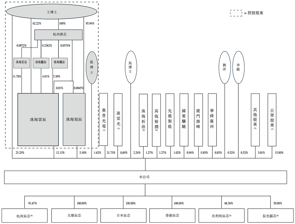 王欣洋博士、张艳霞博士、珠海云辰、珠海旭辰及杭州祺芯是长光辰芯的控股股东。珠海云辰、珠海旭辰是直接员工持股平台,珠海星辰、珠海鹏辰、珠海曦辰是间接员工持股平台。奥普光电、凌云光分别持股21.73%、8.69%。王欣洋和张艳霞为夫妻,亦是浙江大学校友,今年均46岁。