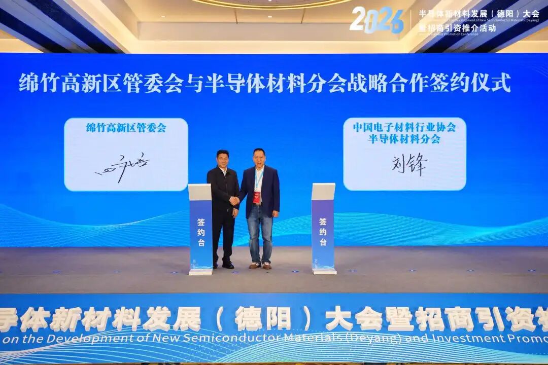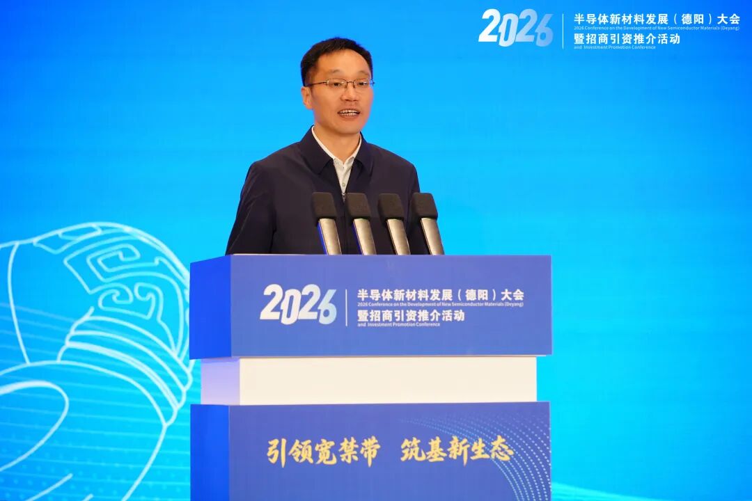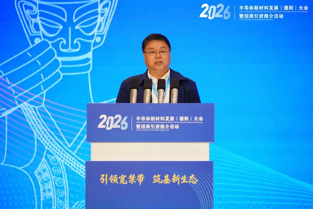 出席今天大会的院士及国家部委领导有:南京大学教授祝世宁,浙江大学教授、硅及先进半导体材料全国重点实验室主任杨德仁,中国电子科技集团公司总监左雷,国家工信部电子信息司集成电路处业务主管齐润楠,国家商务部产业安全与进出口管制局二级主任科员文雅宁。出席大会的德阳市领导有市委副书记、市长黄朝阳,市政府副市长王洪,德阳经开区党工委副书记、管委会主任廖立新,市政府秘书长龚军,市政府副秘书长、办公室主任赵友未,市政府副秘书长姜锵,旌阳区委副书记、区长,天府旌城管委会主任,天府数谷服务中心主任李得立,罗江区委副书记、区长张天则,广汉市委副书记、市长,德阳高新区党工委副书记、管委会主任胡涛,什邡市委副书记、市长叶科,绵竹市委书记陈阳波,中江县委副书记、县长,凯州新城党工委副书记,凯州新城服务中心主任魏宇,德阳经开区党工委委员、管委会副主任龙平,旌阳区委常委、副区长陈超,罗江区委常委、副区长廖正林,广汉市政府副市长,德阳高新区党工委委员杨晓,什邡市政府副市长蔡昭霞,绵竹高新区管委会常务副主任田祯培,凯州新城服务中心副主任,中江县经科局党组书记施艳,天府数谷服务中心副主任辜习凡,市发改委主任陈敏,市经信局局长、市经合局局长万一,市科技局局长谢武林,市商务局局长曾鹏,市国资委党委委员、总经济师钟坤洪等等。出席今天大会的协会领导、重点企业领导及行业专家有:国家自然科学基金委员会高技术研究发展中心原技术总师、二级研究员史冬梅,中国电子材料行业协会理事长潘林,中国电子材料行业协会常务副秘书长鲁瑾,全国半导体设备和材料标委会材料分技术委员会主任贺东江,全国半导体设备和材料标委会封装分技术委员会委员兼秘书长曹可慰,中国电子专用设备工业协会秘书长王志越,中国电子材料行业协会石英材料分会秘书长杨家茂,中国电子材料行业协会磁性材料分会秘书长张明,中国电子材料行业协会磁性材料分会副秘书长翁兴园,中国电子材料行业协会覆铜板材料分会秘书长董榜旗,中国电子材料行业协会铜箔材料分会秘书长刘文成,中国电子材料行业协会电子陶瓷材料分会秘书长刘成,天津市新材料产业联盟秘书长聂铭歧,徐州市半导体行业协会秘书长周带华,亚洲氧化镓联盟秘书长费雪梅,中电科半导体材料有限公司董事长铁斌,山东天岳先进科技股份有限公司党委书记夏宁武,中国电子科技集团有限公司派出专职董事王斌,中电产业发展广西有限公司常务副总经理陶方飏,浙江大学材料科学与工程学院、教授,杭州镓仁半导体有限公司董事长张辉,杭州镓仁半导体有限公司首席技术官夏宁,TCL中环新能源科技股份有限公司研究院副院长、天津商业大学机械工程学院教授级高工张雪囡,久智光电子材料科技有限公司总经理王春玲,深圳平湖实验室主任万玉喜,信息产业电子第十一设计研究院科技工程股份有限公司副院长、天津分院副董事长、 电子高科事业部经理、雄安分院董事长王小红,杭州光机所顾问、《人工晶体学报》执行主编彭珍珍,株洲中车时代电气股份有限公司科学家刘国友,中电科半导体材料有限公司副总经理、山西烁科晶体有限公司董事长李斌,中科院苏州纳米技术与纳米仿生研究所研究员、苏州纳维科技有限公司董事长徐科,奥趋光电技术(杭州)有限公司创始人、CEO吴亮,明德贸易株式会社、上海华颂实业有限公司社长张明华,FerroTec(中国)集团高级顾问邹丽华,FerroTec(中国)集团副总经理费易军,杭州幄肯新材料科技股份有限公司总经理王二轲,天津市万德思诺国际贸易有限公司总经理沈涛,沈阳隆基电磁科技股份有限公司副总经理徐家林,河北工业大学电子信息工程学院教授周建伟,河北工业大学半导体材料研究所教授陈洪建,天津工业大学电气与电子工程学院院长牛萍娟,天津理工大学功能晶体研究院副院长徐永宽,西安交通大学教授刘立军,西安交通大学教授牛刚,怀柔实验室研究员李哲洋等等。