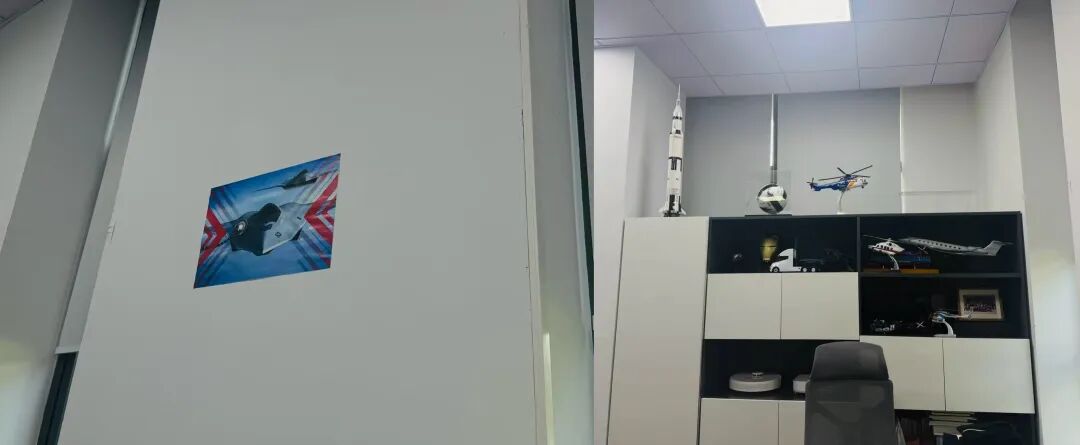 俞浩十几平米的办公室,墙上有一张战斗机的海报,柜子里摆满了飞机模型。