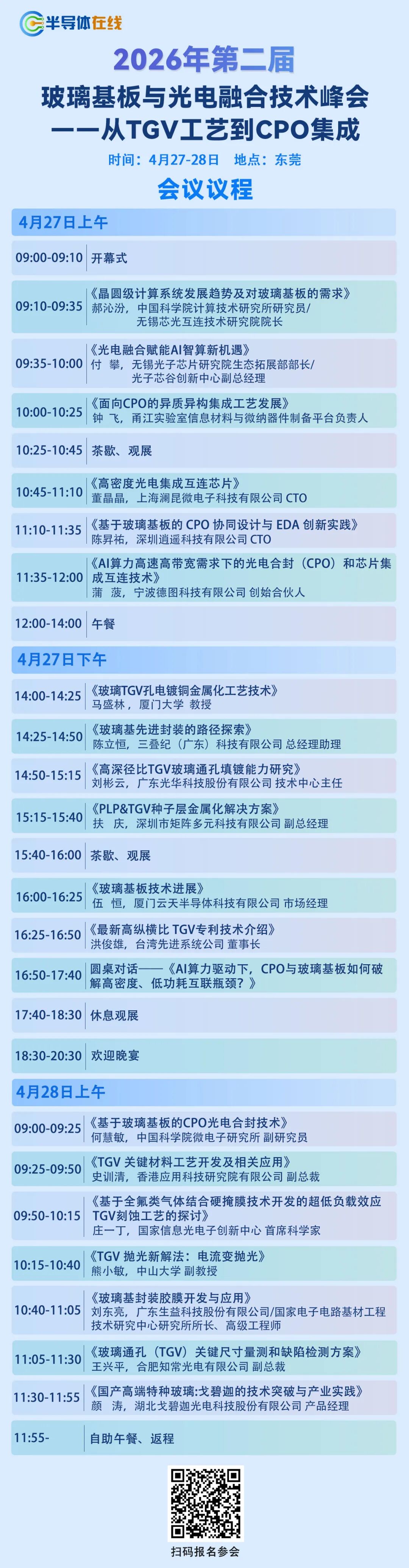 我们将于4月27-28日在东莞举办第二届玻璃基板与光电融合技术峰会——从TGV工艺到CPO集成。本次峰会将汇聚国内外玻璃基板、TGV工艺、CPO技术等领域的知名专家、学者和企业代表,共同探讨行业发展趋势、分享最新研究成果和技术经验。我们诚挚邀请您参与这一盛会,共同见证和推动TGV工艺和CPO 技术等的发展,为未来科技的进步贡献力量。