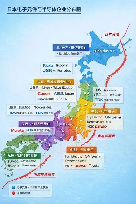 核心影响区域:岩手县、青森县、宫城县、福岛县,该区域聚集了铠侠(Kioxia)、TEL、信越化学、SUMCO等全球半导体龙头,覆盖NAND闪存、半导体制造设备、硅片、特种材料等关键环节。