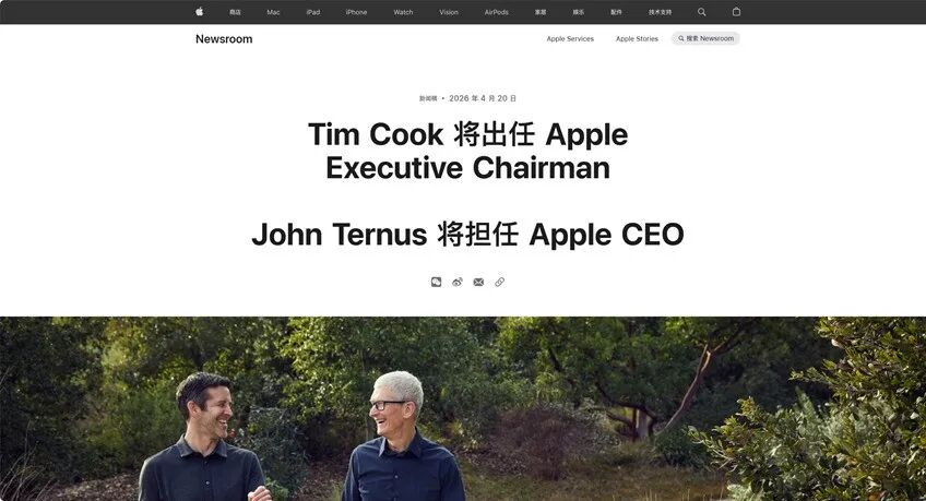 当地时间4月20日,苹果公司宣布,任命内部人士约翰·特纳斯(John Ternus)将于2026年9月1日接任CEO,蒂姆·库克(Tim Cook)转任董事会执行主席。这一消息获得董事会全票通过。