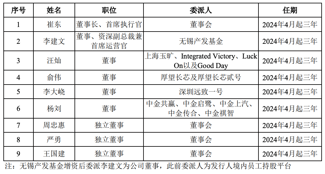 盛合晶微共有9名董事,其中3名为独立董事。
