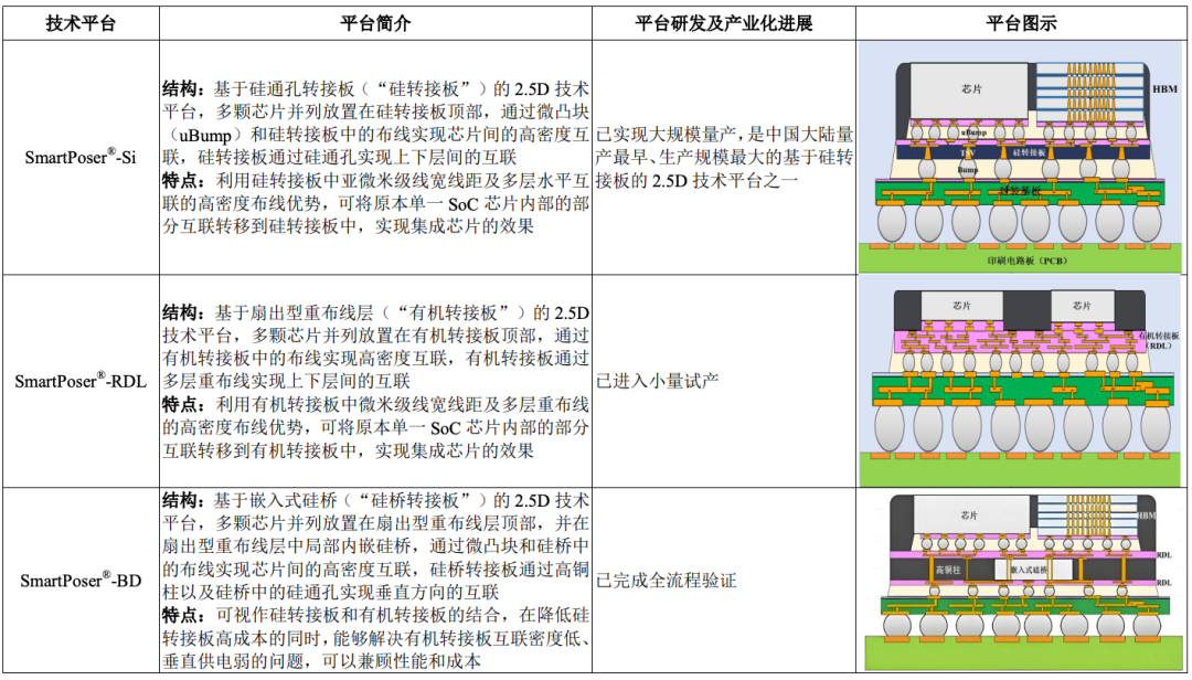 盛合晶微在芯粒多芯片集成封装领域,拥有可全面对标全球最领先企业的技术平台布局,尤其对于业界最主流的基于硅通孔转接板(TSV Interposer)的2.5D集成(2.5D),其是中国大陆量产最早、生产规模最大的企业之一,代表中国大陆在该技术领域的最先进水平,且与全球最领先企业不存在技术代差。
