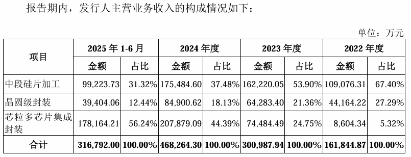 招股书显示,盛合晶微是中国大陆最早开展并实现12英寸中段高密度凸块制造量产的企业之一,满足当时最先进的28nm、14nm等制程节点芯片工艺研发和量产配套支持的需要。提供晶圆级封装(WLP)和芯粒多芯片集成封装等全流程的先进封测服务,致力于支持各类高性能芯片,尤其是图形处理器(GPU)、中央处理器(CPU)、人工智能芯片等。