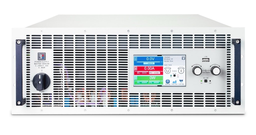 EA-PSB 10080-1000型号可在单个4U机架单元内提供高达1000A的电流。系统支持模块化并联,能够构建从数十千瓦到3.84MW的多机架系统。