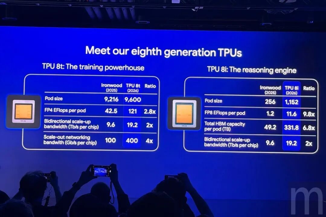 当地时间2026年4月22日,在拉斯维加斯举行的Google Cloud Next '26大会上,谷歌正式发布了第八代张量处理器(TPU)。这是谷歌史上首次将AI训练与推理任务拆分至两款独立芯片——专为模型训练设计的TPU 8t与专为推理优化的TPU 8i,标志着其AI硬件战略的重大转向。