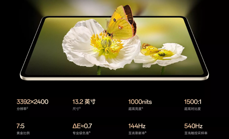 OPPO Pad 5 Pro的出众的视觉表现,源自过硬的屏幕硬件支撑。其3392×2400的物理分辨率,在13.2英寸屏幕上实现了约315 PPI的像素密度。文字与图像呈现极致清晰。屏幕采用LTPS(低温多晶硅)背板技术,确保高分辨率下的稳定驱动,并覆盖DCI-P3广色域,精准还原丰富色彩。屏幕支持最高144Hz刷新率,结合精细的驱动调校,保障了从办公滑落到影音娱乐的全程流畅跟手。1000nits HBM峰值亮度使其在明亮环境下依然清晰,并能充分展现HDR内容的动态范围。独特的7:5屏幕比例更接近传统纸张与文档,在纵向使用时能一屏显示更多内容,显著提升阅读与办公效率。在健康护眼方面,这块屏幕集成了硬件级低蓝光技术与全电路无频闪调光方案,从光源处减少有害光并消除闪烁,已通过德国莱茵TÜV等权威护眼认证,为长时间使用提供舒适保障。