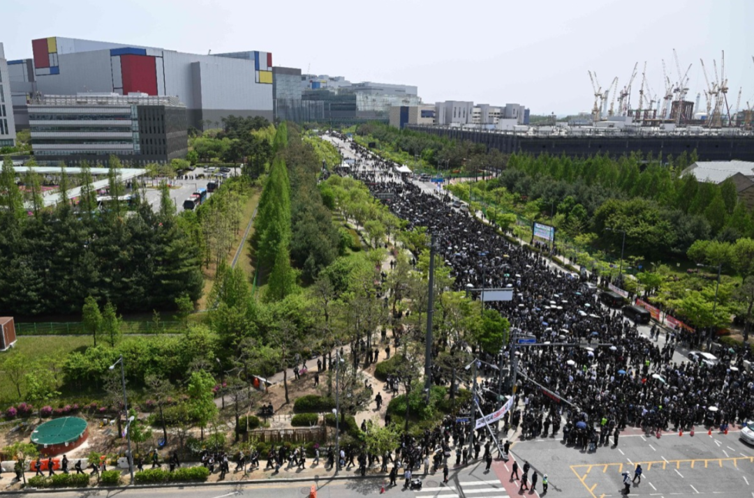 4月23日消息,据韩媒报道,数万名三星电子工人在首尔南部一个庞大的工厂园区举行集会,表达他们对薪酬水平的不满。工人们称,若其工资要求得不到满足,他们计划从5月21日起罢工18天,参与人数为4万人。