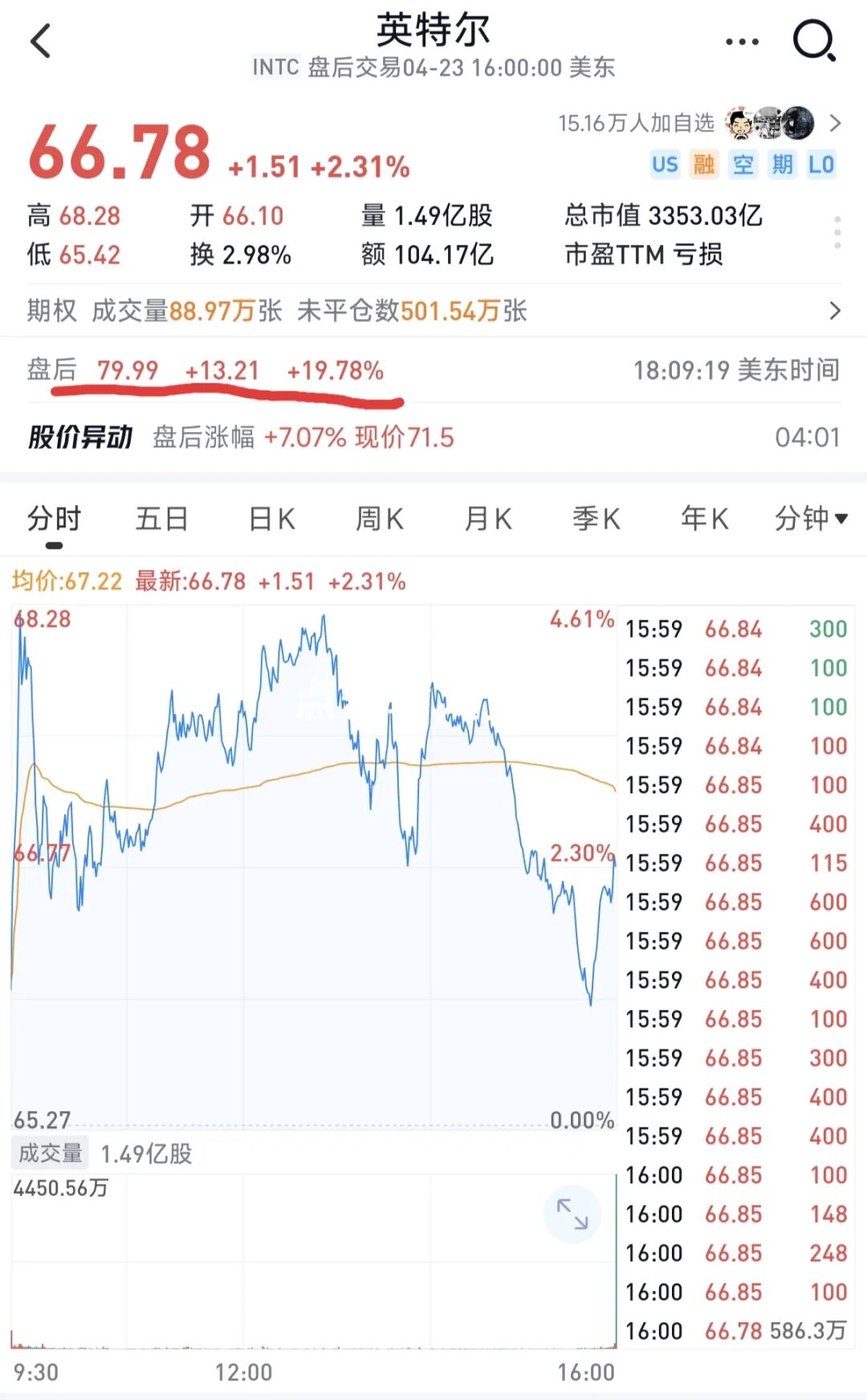 受财报和强劲指引的双重提振,英特尔股价在盘后交易中一度飙升近20%。